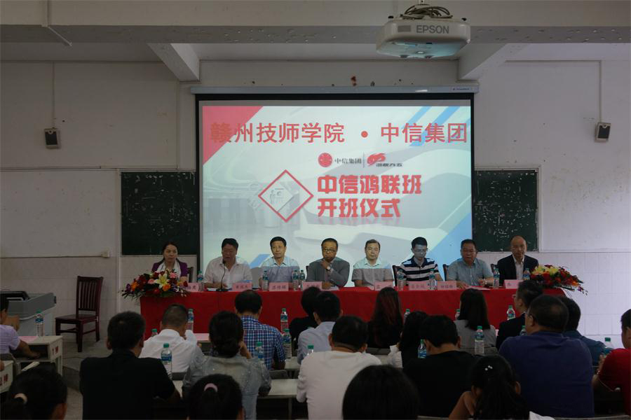贛州市政協(xié)副主席藍赟、中信集團協(xié)同部總經理蘇國新、贛州市市委副秘書長潘金城、市委組織部副部長、市人力資源與社會保障局局長蘇傳輝、贛州技師學院院長鐘昭鋒、贛州技師學院黨委書記黃國杰、中信集團協(xié)同部處長喬梁、中信集團協(xié)同部經理成旭東、中信·鴻聯(lián)九五副總裁劉海鷹、廣東鴻聯(lián)九五總經理助理邱俊輝及“客戶信息服務中信定向班”的全體教師和同學參加了典禮。