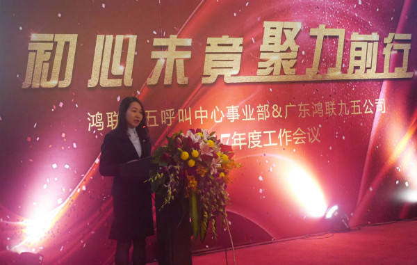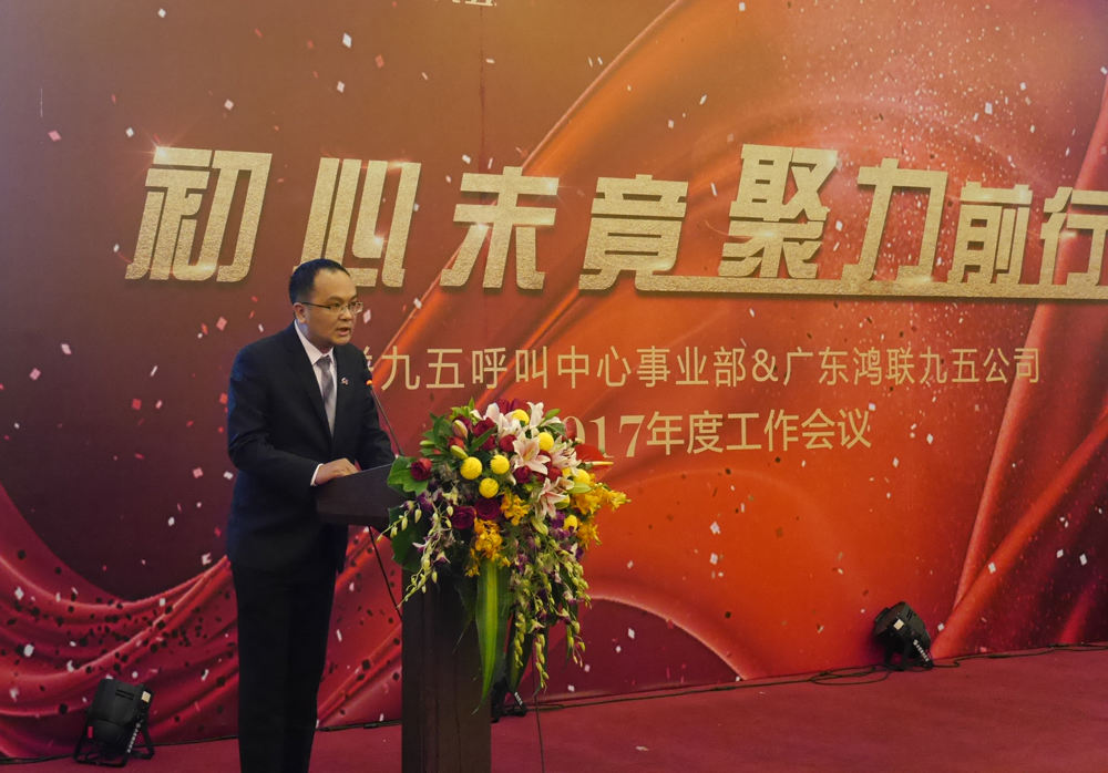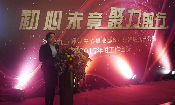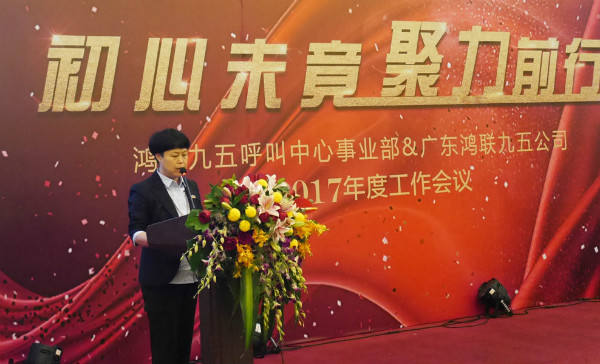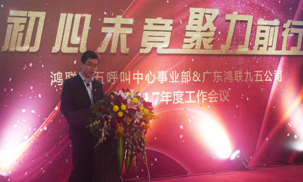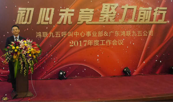 1月17-18日,鴻聯(lián)九五呼叫中心事業(yè)部&廣東鴻聯(lián)九五公司2017年度工作會(huì)議在深圳求水山酒店舉行,來(lái)自集團(tuán)總部、廣東公司的相關(guān)領(lǐng)導(dǎo)和來(lái)自于全國(guó)呼叫中心各地職場(chǎng)的項(xiàng)目經(jīng)理等120余人濟(jì)濟(jì)一堂,共同回顧2017年的工作情況,并對(duì)2018年的工作計(jì)劃以及愿景目標(biāo)進(jìn)行展望,各中心、部門(mén)等領(lǐng)導(dǎo)先后進(jìn)行了匯報(bào),會(huì)議由曹偉偉經(jīng)理主持。