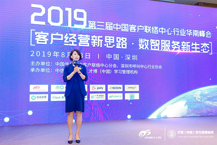 2019年8月22日和23日,由中國信息協(xié)會客戶聯(lián)絡(luò)中心分會、深圳市呼叫中心行業(yè)協(xié)會聯(lián)合主辦,中信·鴻聯(lián)九五與才博(中國)學(xué)習(xí)管理機(jī)構(gòu)聯(lián)合承辦的2019年第三屆中國客戶聯(lián)絡(luò)中心行業(yè)華南峰會在廣東深圳隆重召開,大會以“客戶經(jīng)營新思路 · 數(shù)智服務(wù)新生態(tài)”為主題。