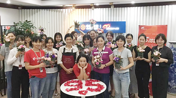 深圳的小鴻人們與領導層們深入溝通,完成了“說出你的心聲”的員工座談會。天安本部的小鴻人們組織了以“讓美麗綻放”的插花活動,并一同分享了精美的餐食。