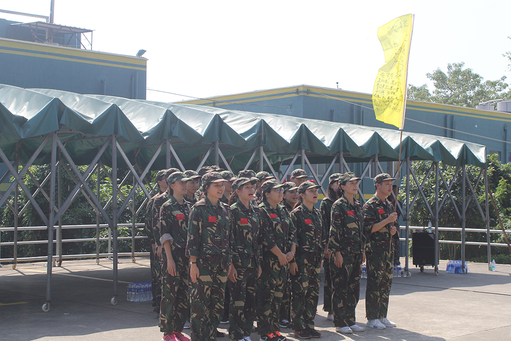 乘坐上班車,一路歡歌笑語后大家齊聚在本次活動的首個目的地:大鵬拓展訓(xùn)練基地,進(jìn)行以“狼行天下,勇往直前”為主題的拓展訓(xùn)練。八分鐘收拾好行李,整理完著裝,所有人整齊的列隊在驕陽下。