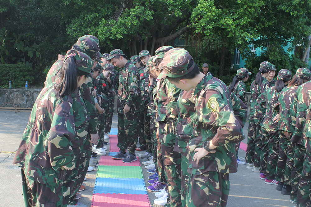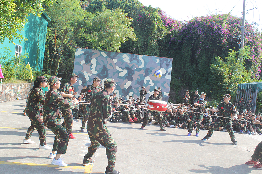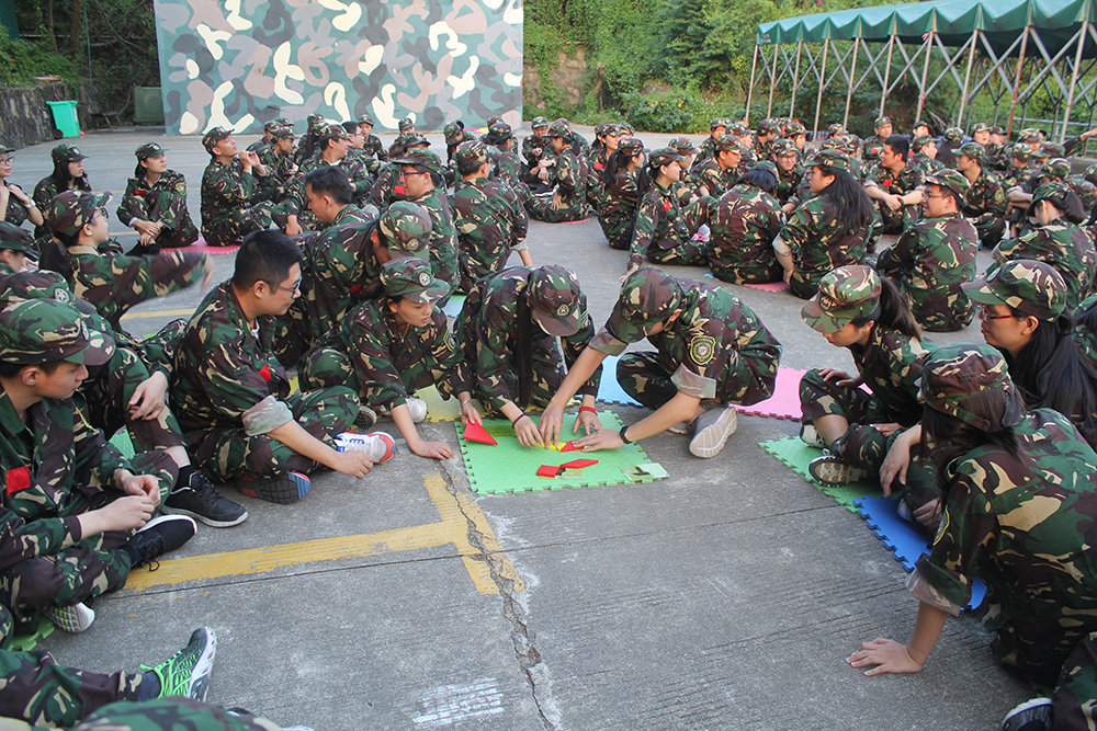 隨后,正式進(jìn)入戶外場地開始訓(xùn)練。不僅有集體木鞋、擊鼓顛球等團(tuán)隊合作項目,還有七巧板、青蛙過河等智力與合作相結(jié)合的項目。