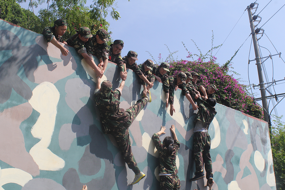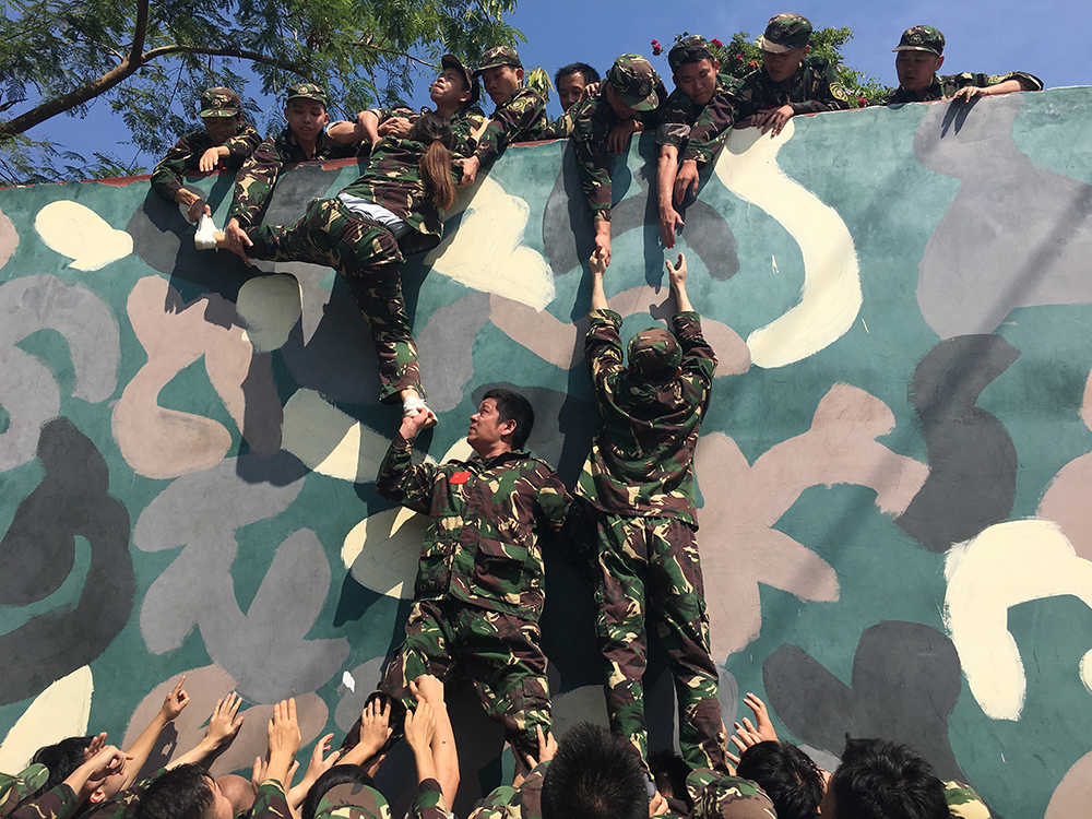 最有意義的活動出現(xiàn)在最后——翻越“畢業(yè)墻”,也叫“逃生墻”或“勝利墻”。其規(guī)則是團(tuán)隊所有人在不借助其他任何工具的情況下,全部翻越4.2米的直立高墻。