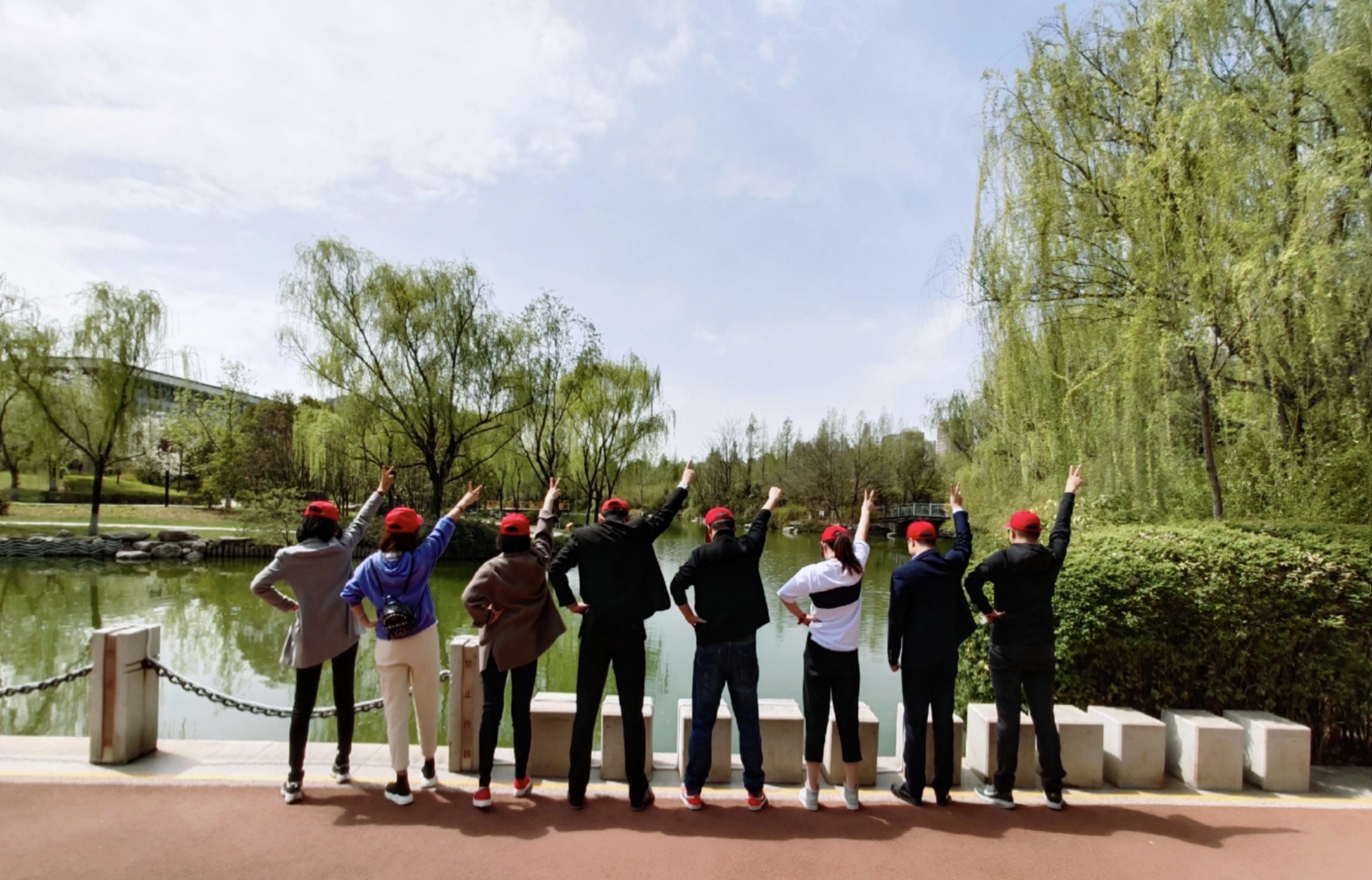 當天12-14點,由管理團隊代表和3位阿里駐場老師開啟了“低碳環(huán)保,綠色出行”主題公益活動。同事們都帶著統(tǒng)一的“小鴻帽”,從公司出發(fā)全程健步走,來到西安城市運動公園,對公園內(nèi)地面垃圾進行清理。